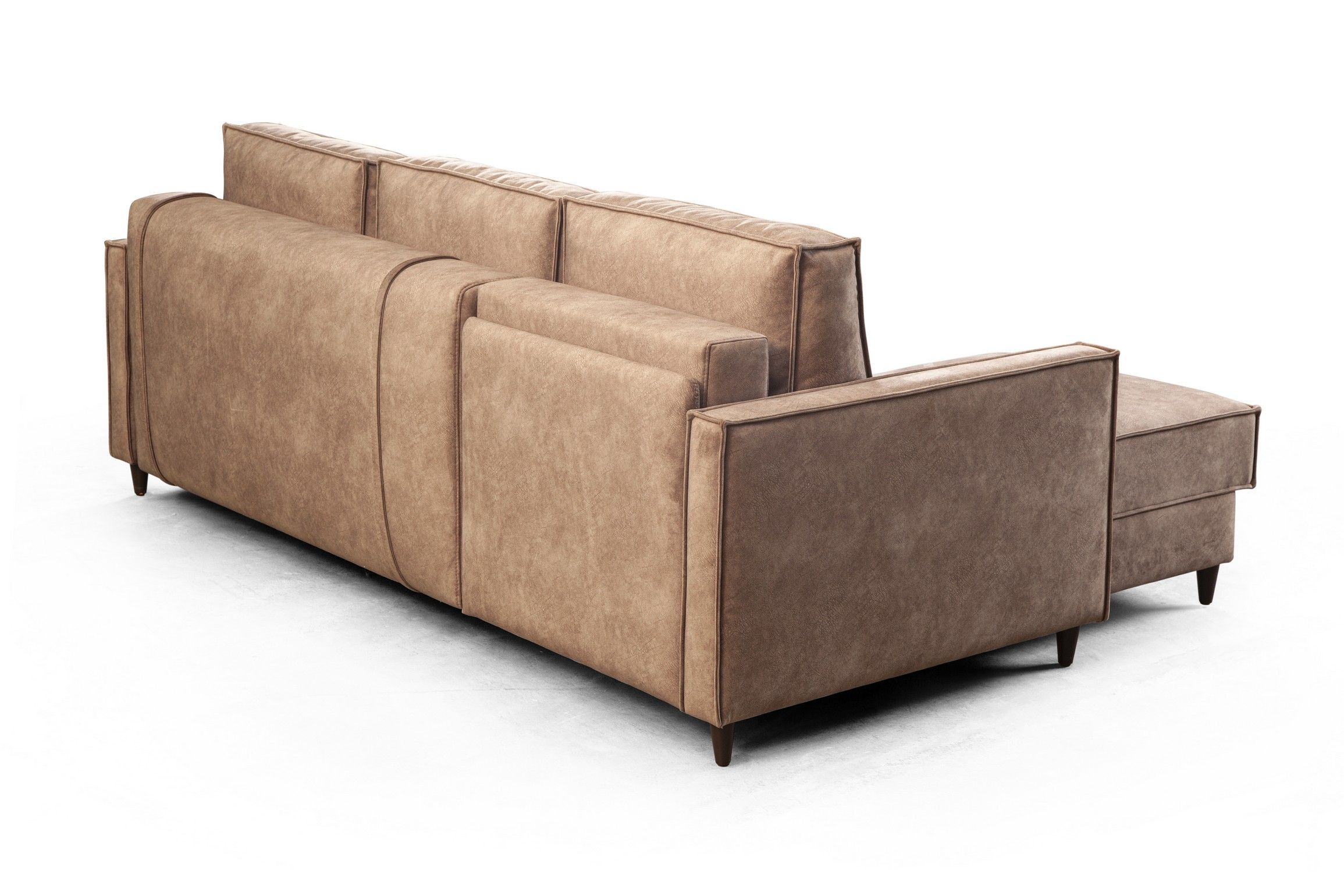 Контуры сиденья, приспинных подушек и подлокотников дополнены «французским швом», который выполняет декоративную функцию и делает дизайн дивана стильным и гармоничным. Деревянные конусообразные ножки, на которых стоит диван, создают эффект невесомости, что делает восприятие пространства более легким и свободным. А два цвета опор позволяют органично вписать данную модель как в светлый интерьер, так и в интерьер в темных тонах.