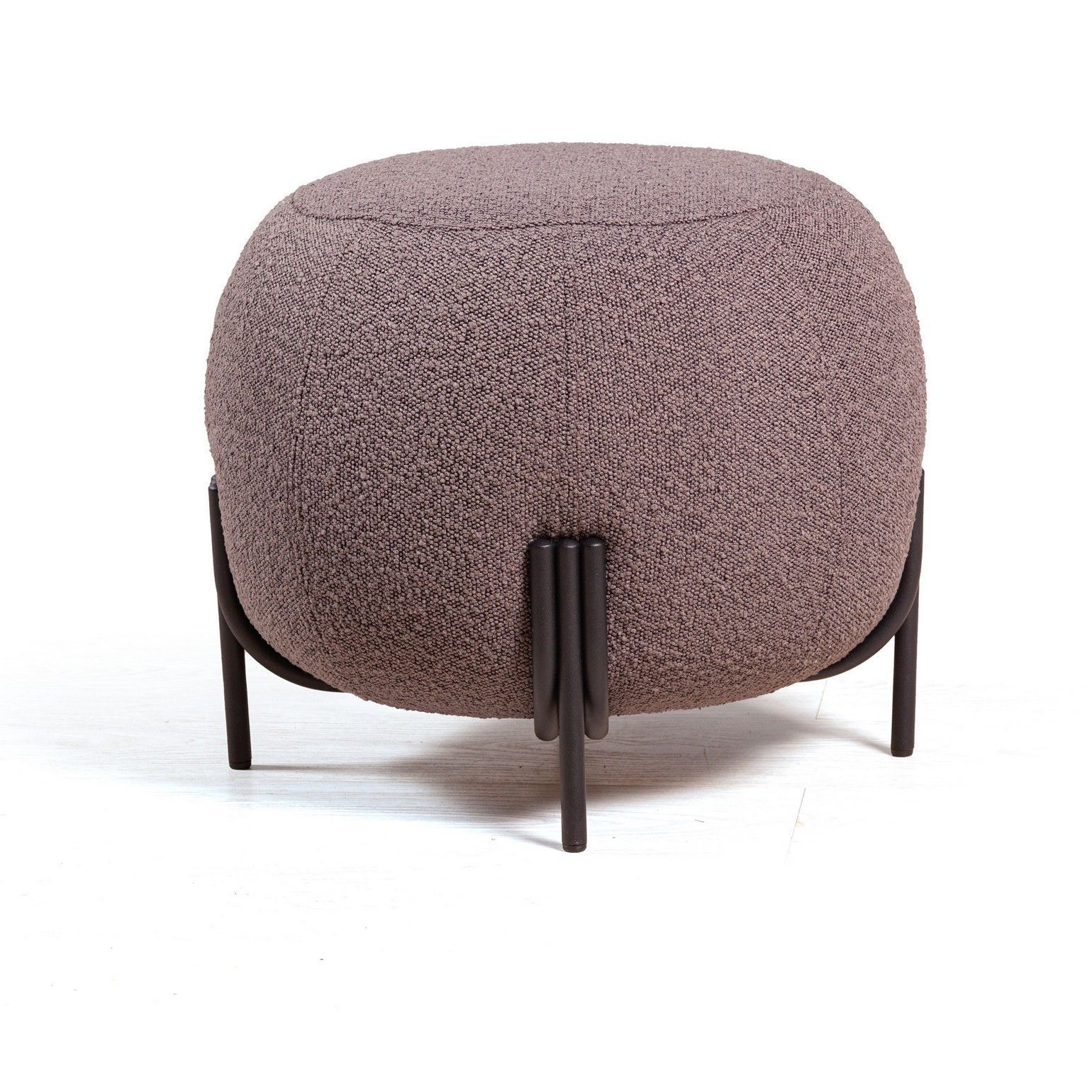 Материал пуфа ткань - букле. Ткань состоит из множества нитей разного оттенка и толщины. Они создают сложную структуру, красивые переливы цвета и полутона. Сидеть на пуфе очень удобно, наполнитель из современного, высокопрочного пенополиуретана, мягкий, не крошится, быстро восстанавливает форму.