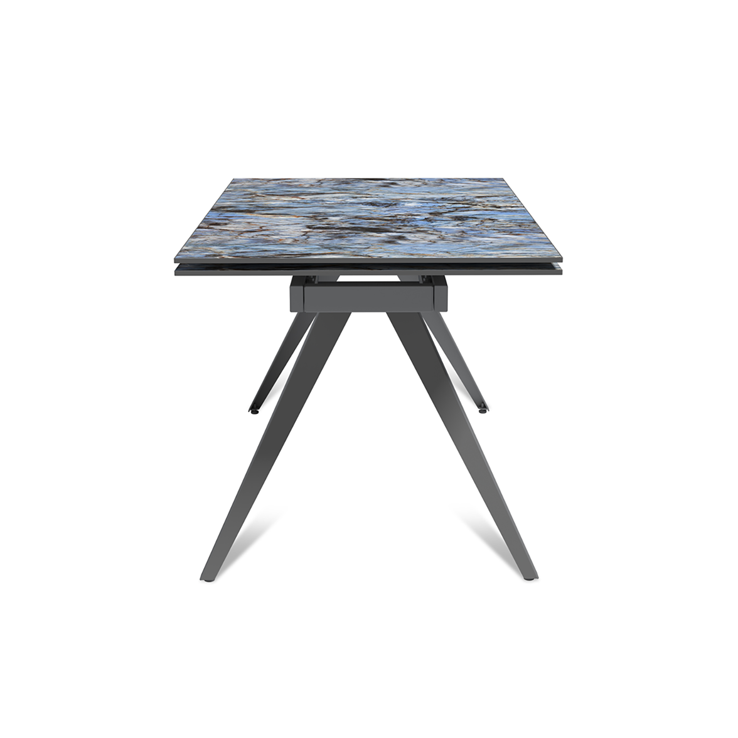 Стол с керамической столешницей «Асти» представляет собой стильное и практичное решение для кухни или столовой. Поверхность столешницы, выполненная из керамики, обеспечивает прочность, легкость в уходе и устойчивость к царапинам и температурным изменениям. Стильное металлическое основание дарит стабильность и надежность, дополняя современный дизайн стола. Данный стол идеально подходит для семейных обедов и встреч с друзьями, создавая уютную и стильную обстановку в вашем доме. Столешница модели «Асти» может быть как компактной по площади так и просторной благодаря наличию механизма трансформации.