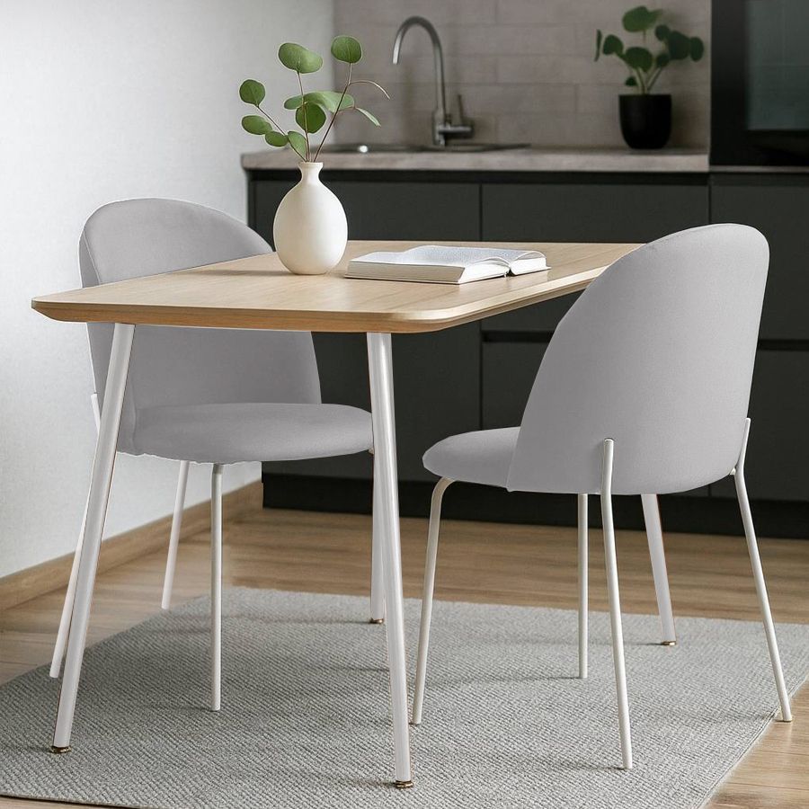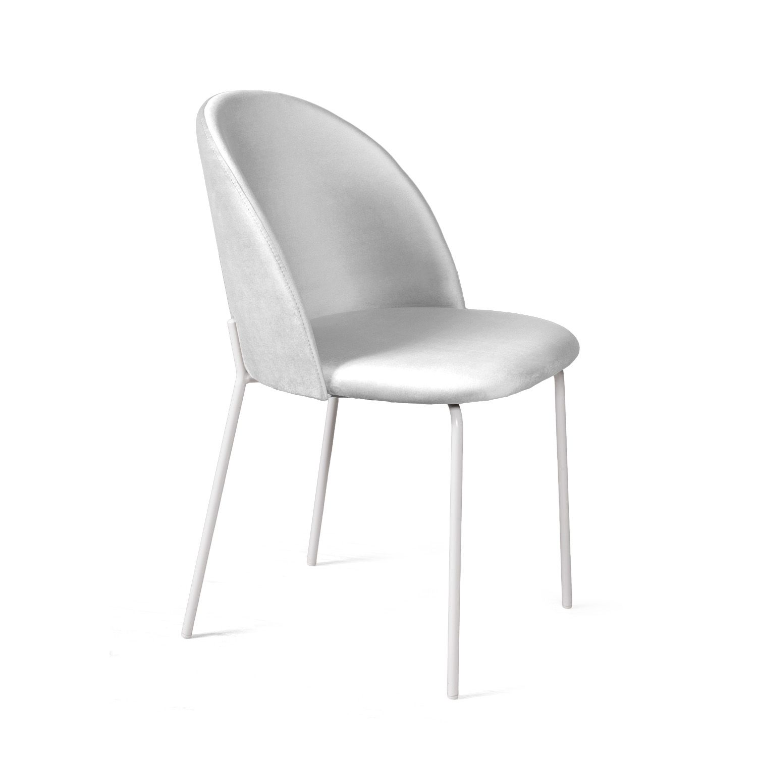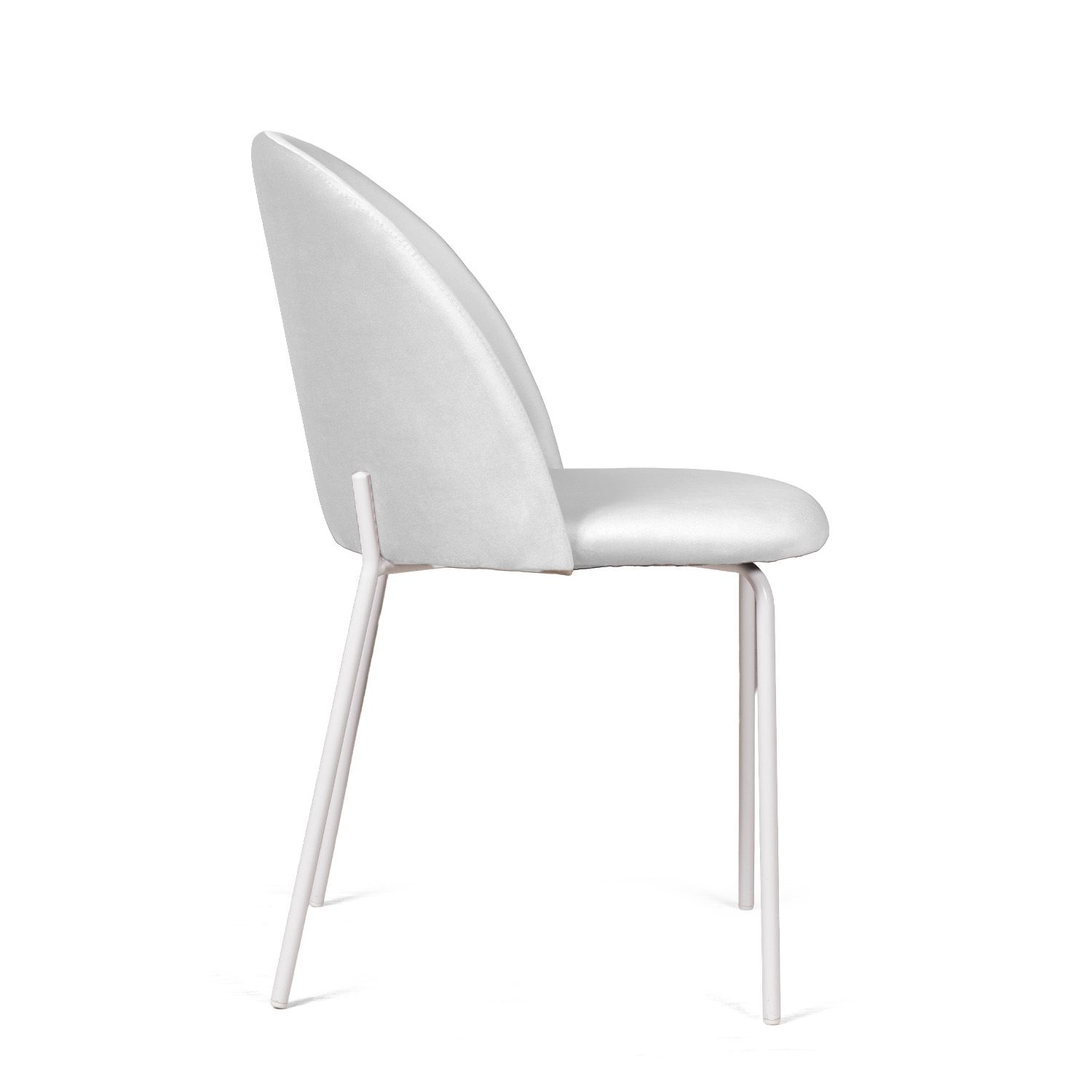 Металлические ножки окрашены в белый матовый цвет, расположены так, чтобы обеспечивать абсолютную устойчивость и защитить стул от раскачивания. На ножках предусмотрены специальные пластиковые накладки, которые защищают пол от царапин.