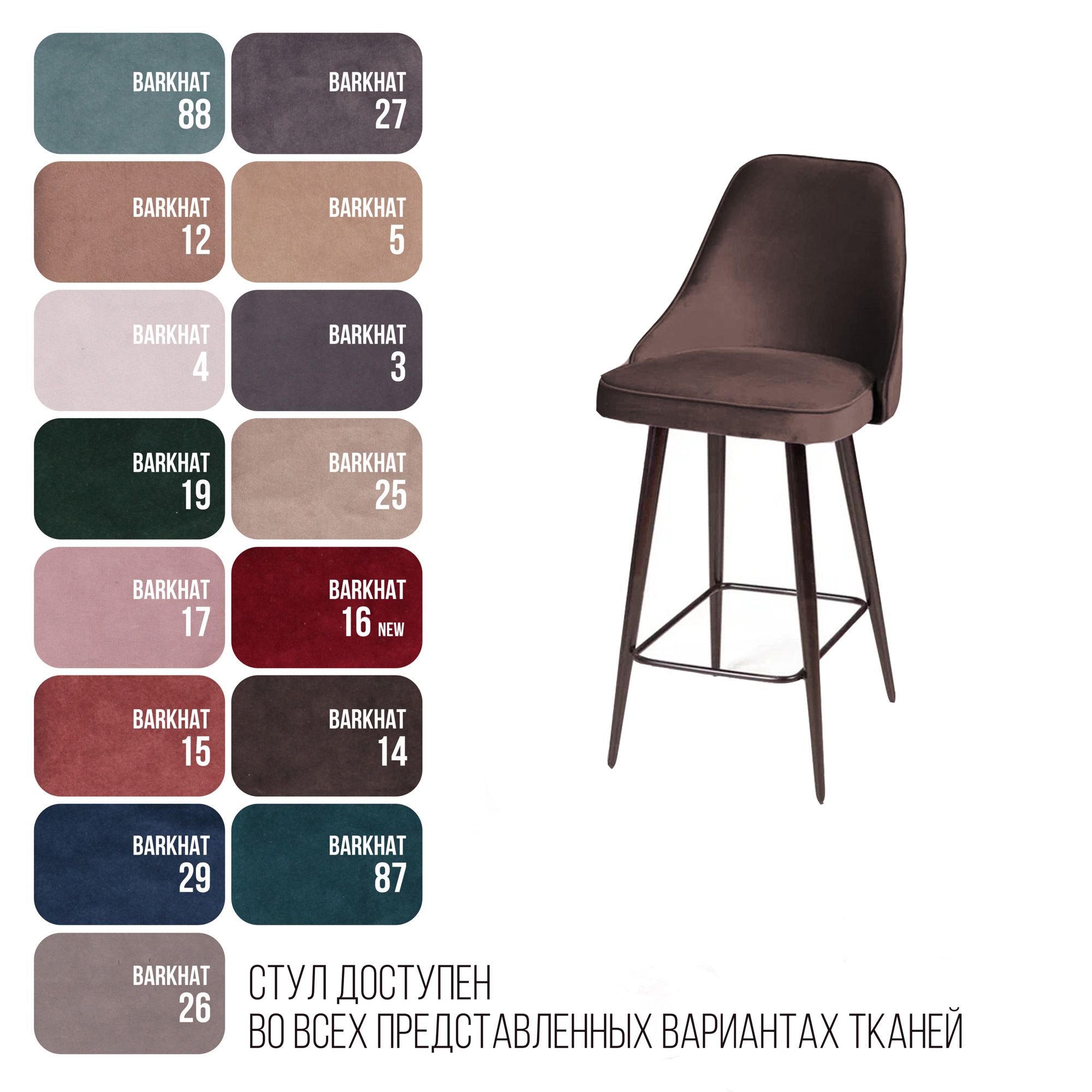 Полубарный стул «Оливер», пожалуй, самая элегантная, лаконичная модель. Сочетание плавных линий и бархатистой обивки очерчено кантом в тон. Использование неоднородного цвета в обивке стула Оливер придает модели особый шарм.