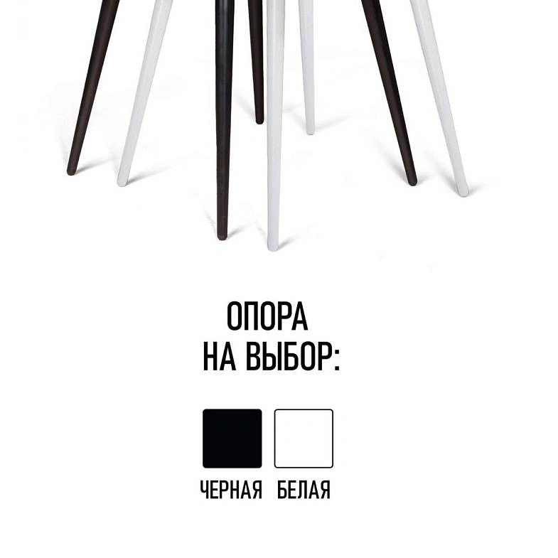 ОпорыМеталлические ножки черного матового цвета. На опорах предусмотрены защитные пластиковые накладки, которые придают стулу дополнительную устойчивость и защищают пол от царапин.