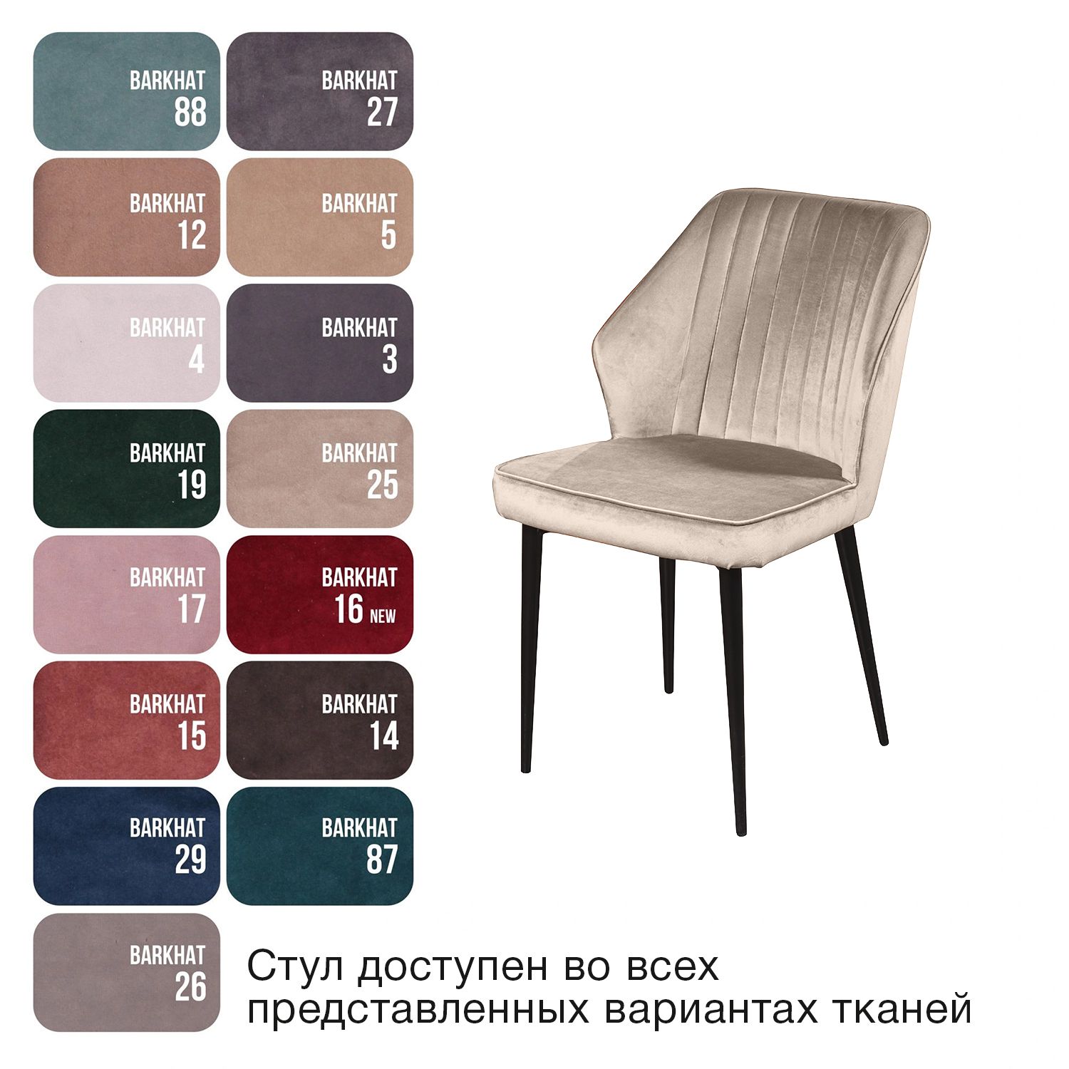 Мягкий бархат - высококачественный материал с повышенной износостойкостью. Он прост в уходе и не потеряет достойный вид долгое время. Ткань прочная, специально предназначена для ежедневного использования дома или в заведениях общественного типа (кафе, рестораны).